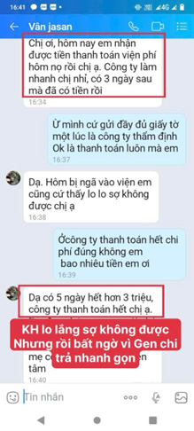 Ban đầu, khách hàng Vân chia sẻ rằng chị khá lo lắng, sợ rằng chi phí điều trị sẽ không được thanh toán đầy đủ. Tuy nhiên, chỉ sau 3 ngày kể từ khi nộp đầy đủ hồ sơ, Generali đã thẩm định và chuyển tiền trực tiếp vào tài khoản của khách hàng.