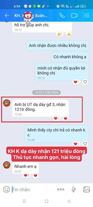 “Anh nhận đủ quyền lợi 121 triệu đồng. Công ty chi trả nhanh gọn.”